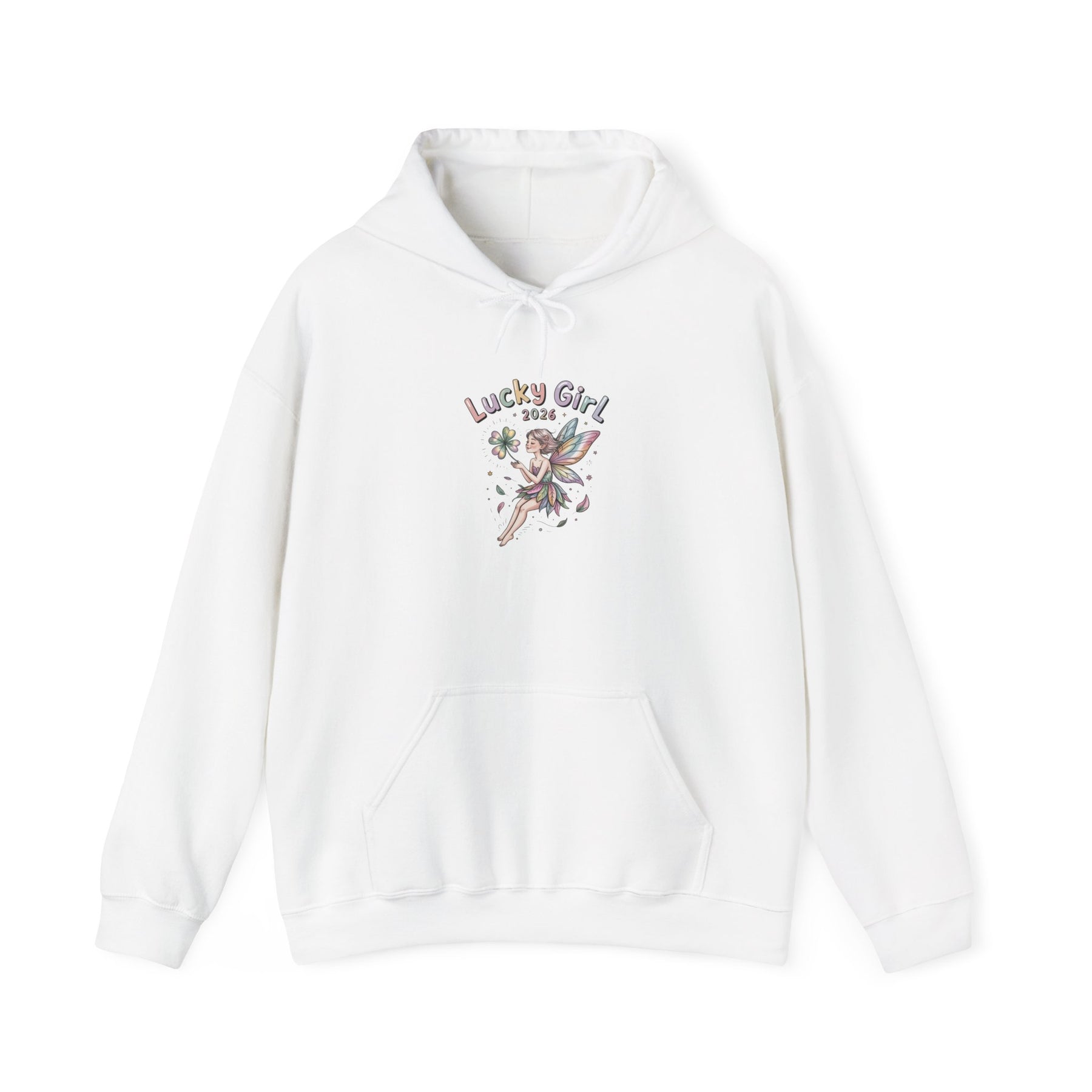 Soft, whimsical hoodie featuring a pastel, charm-style graphic that blends luck symbols and a gentle mantra vibe aligned with the “Lucky Girl 2026” manifest-luck trend. The artwork uses muted pastels with subtle metallic accents and playful lettering to evoke a glowy, hopeful mood—an everyday wearable that reads like a small affirmation. It suits shoppers seeking upbeat, feminine-leaning manifest-luck style and pairs with cozy winter layering or late-December wardrobe updates.