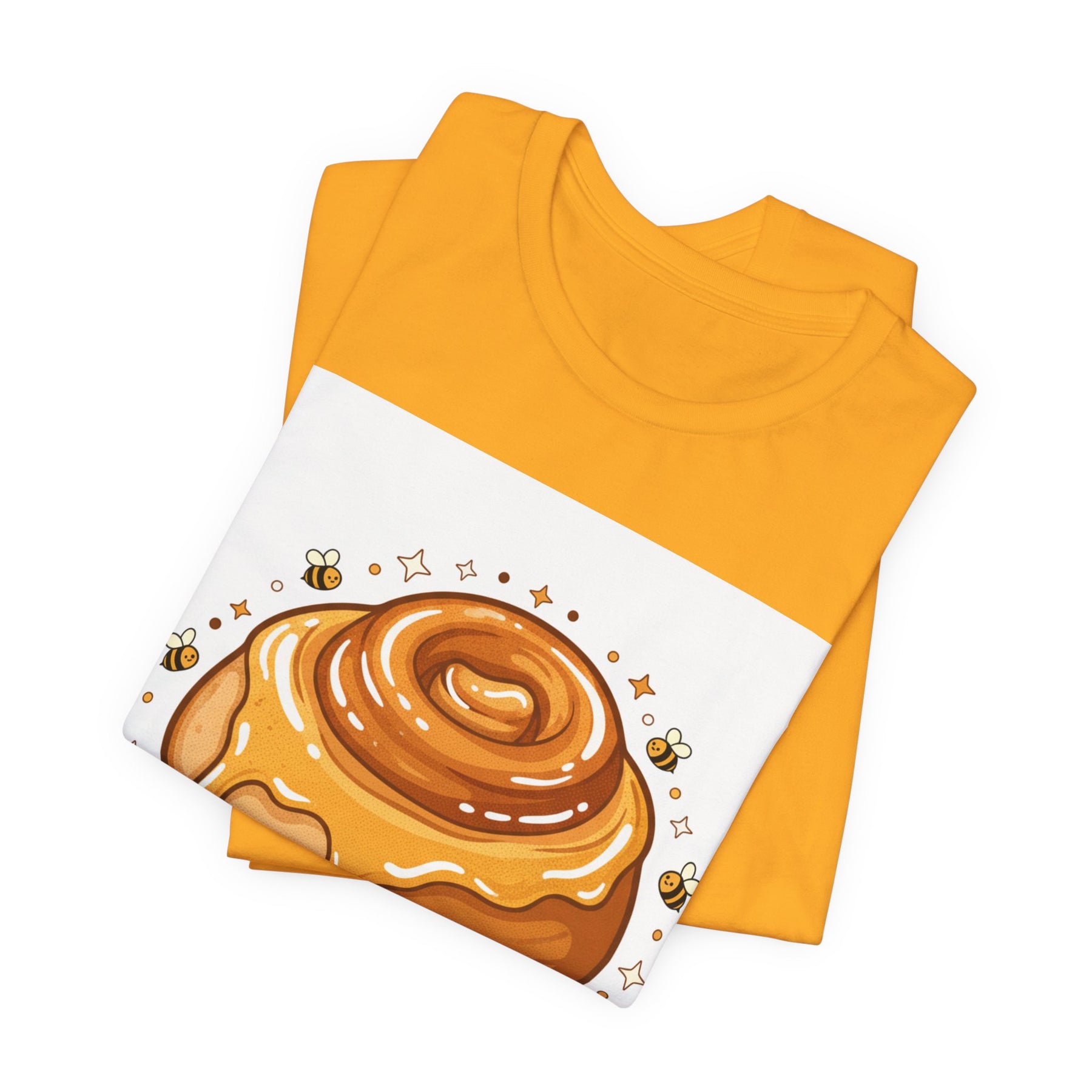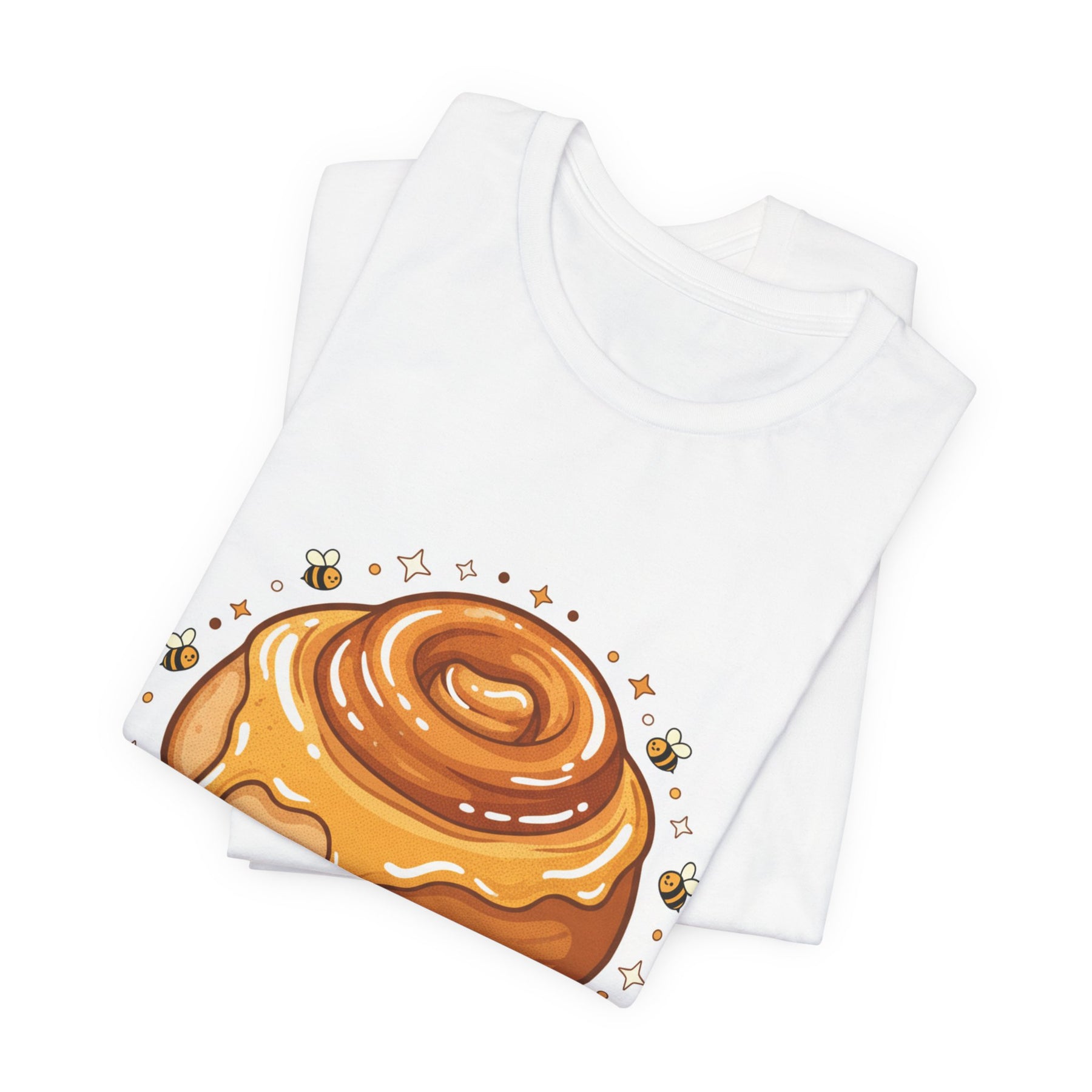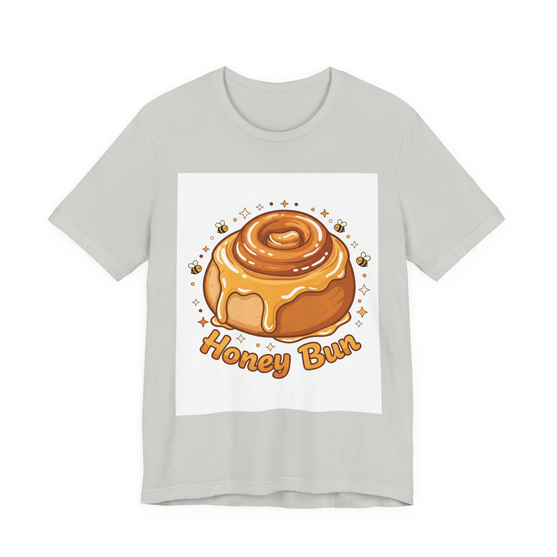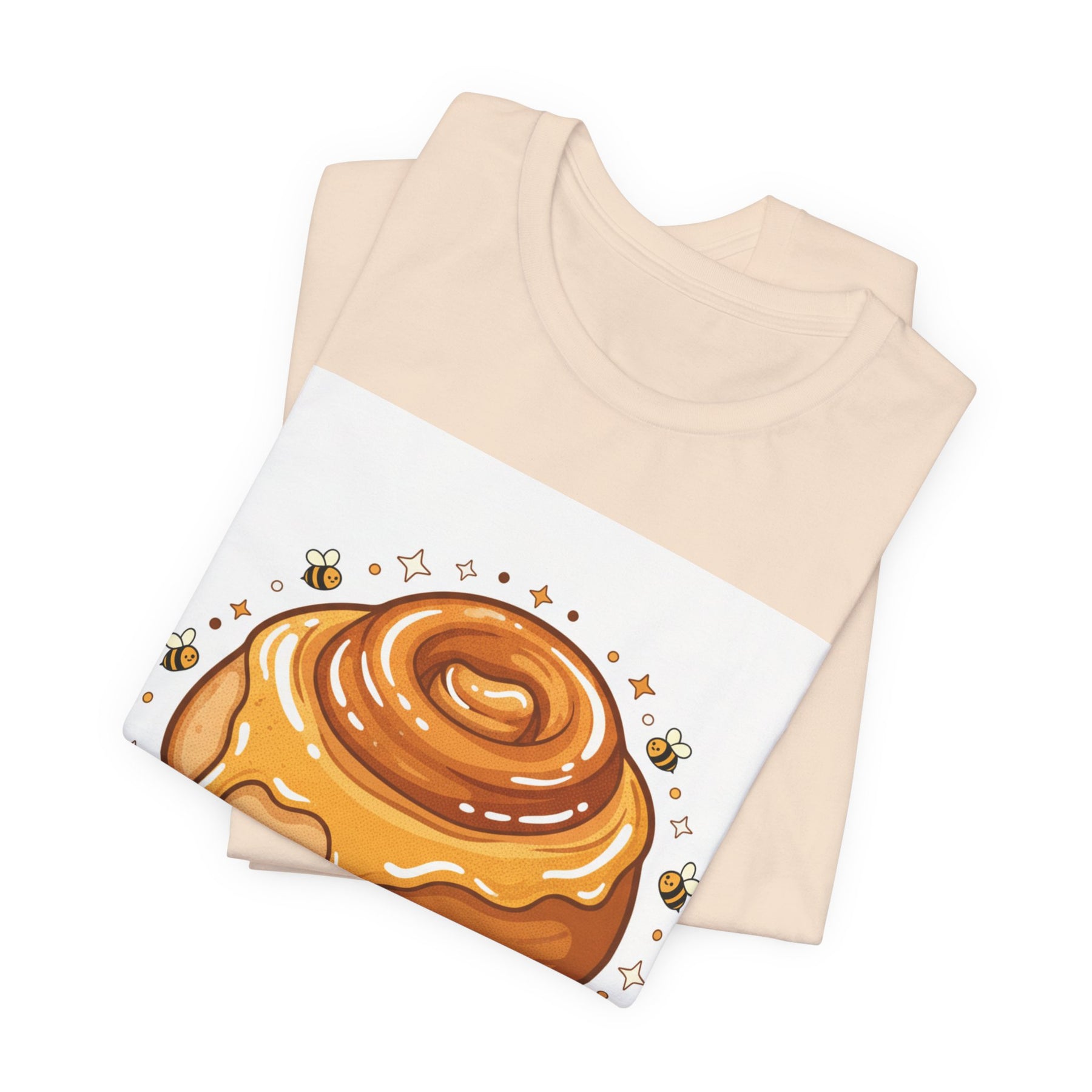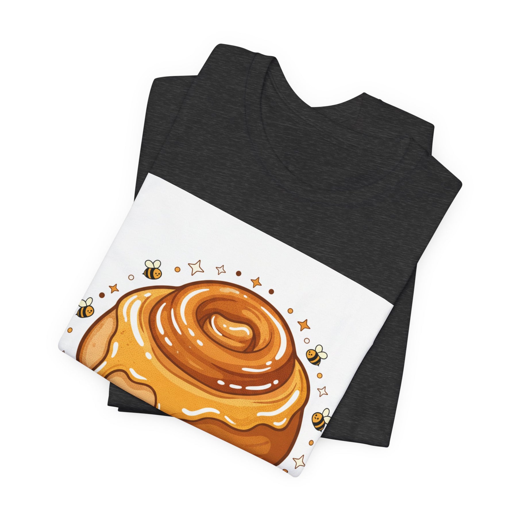 This lightweight, breathable tee brings a warm, cozy vibe to everyday wear. On soft 100% Airlume combed and ring-spun cotton, a glossy illustrated honey bun sits front and center — golden swirls, dripping glaze, and tiny bees create a playful, comforting scene. The retail fit and crew neckline keep the look tidy and easy to layer under jackets or wear solo while running errands, meeting friends, or enjoying a slow weekend morning. Thoughtfully finished with side seams, shoulder tape, and a tear-away label for comfort and durability, it blends sweet charm with practical daily wearability. The design’s cheerful palette pops on light backgrounds, making the tee feel like a small, wearable moment of joy.