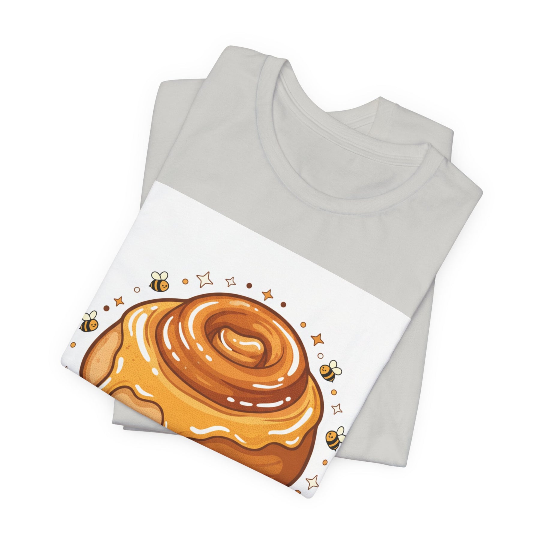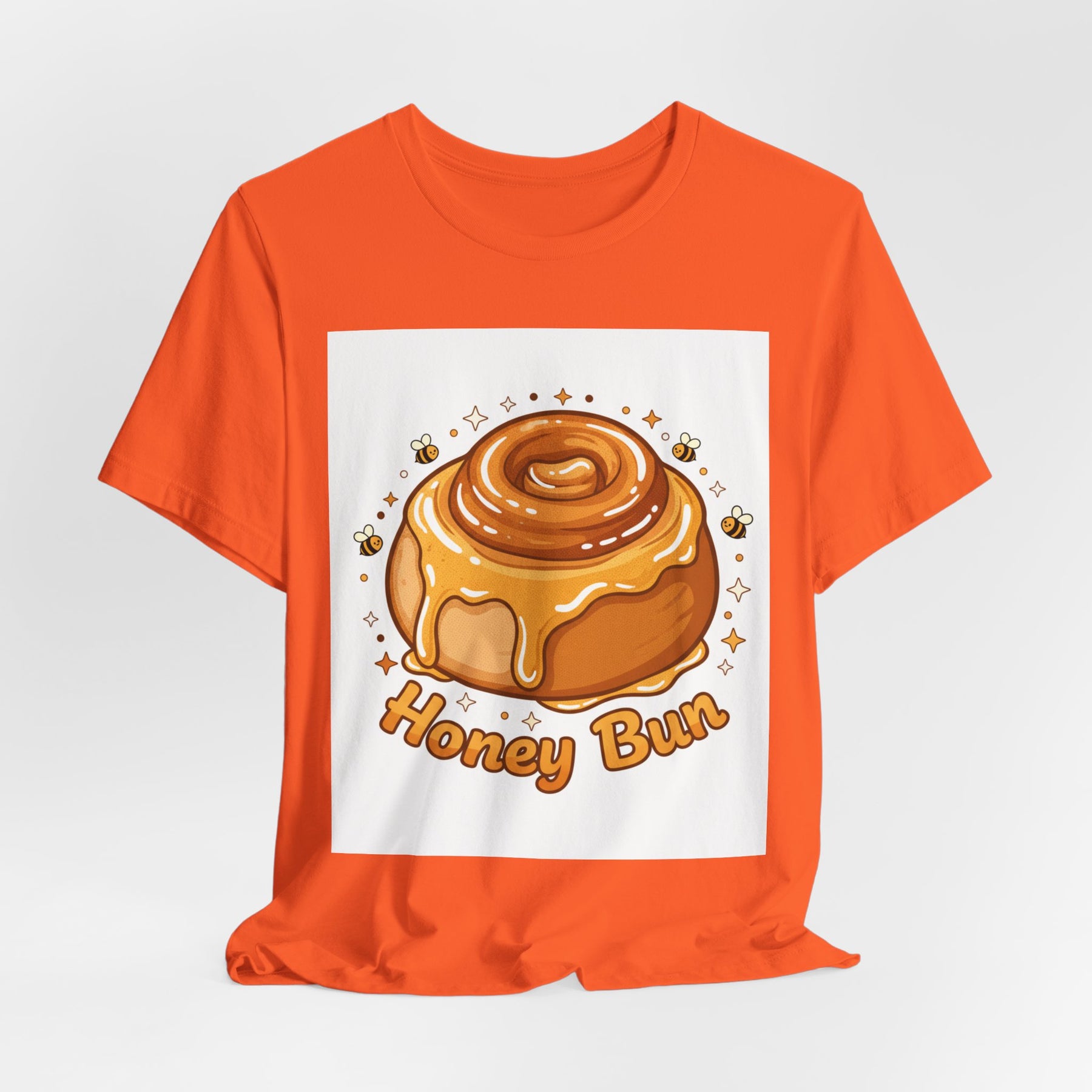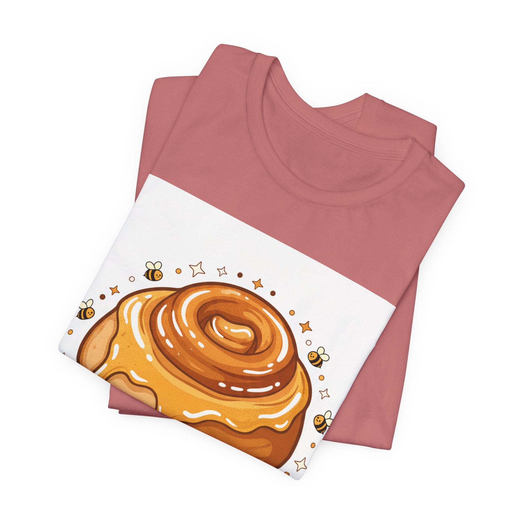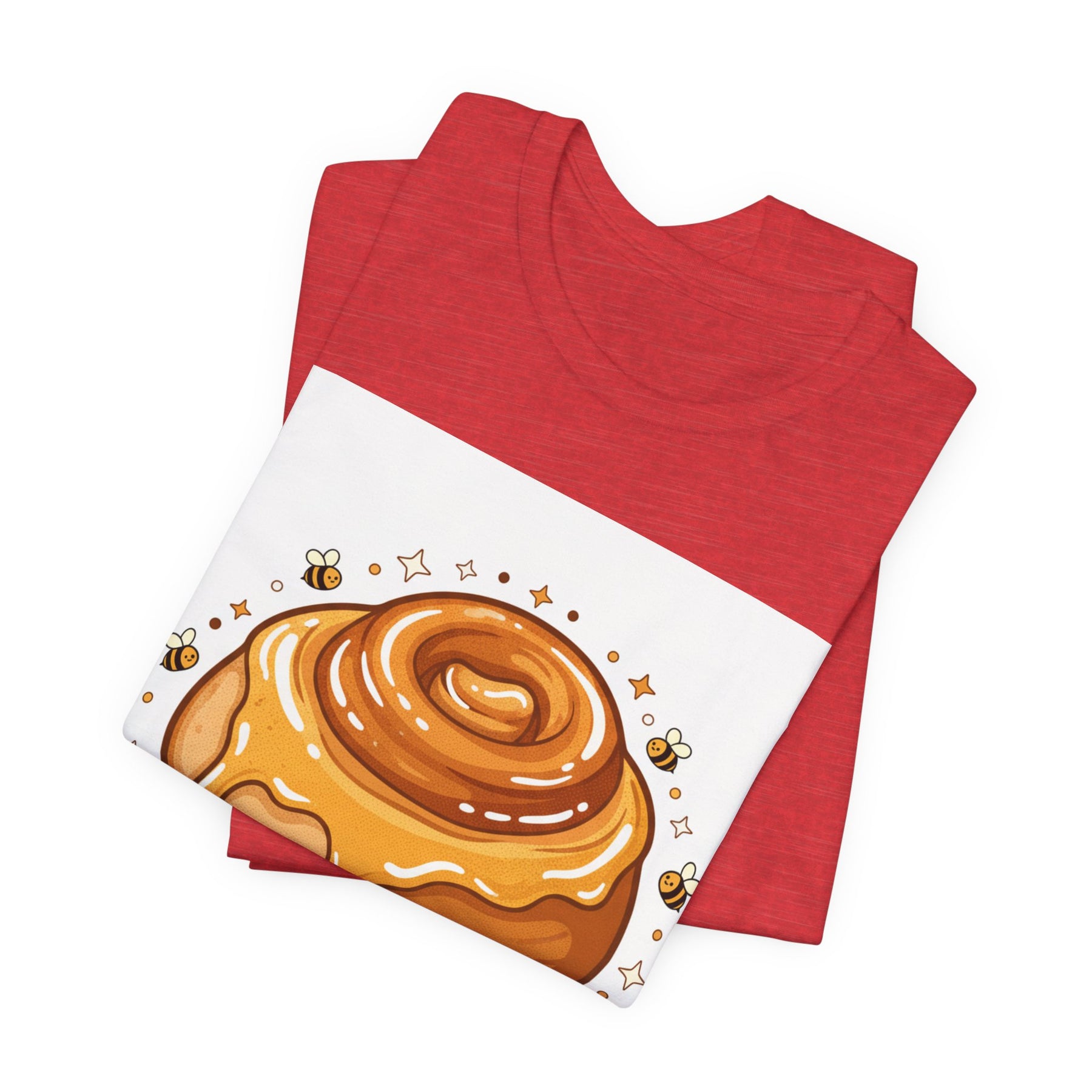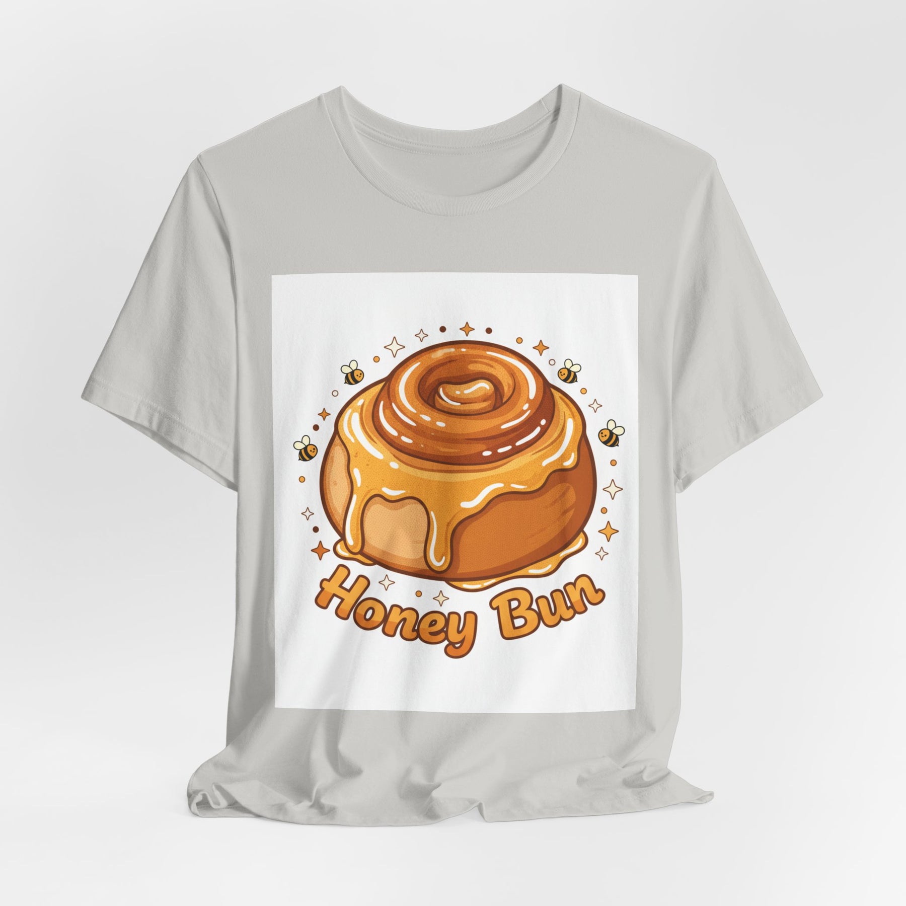 This lightweight, breathable tee brings a warm, cozy vibe to everyday wear. On soft 100% Airlume combed and ring-spun cotton, a glossy illustrated honey bun sits front and center — golden swirls, dripping glaze, and tiny bees create a playful, comforting scene. The retail fit and crew neckline keep the look tidy and easy to layer under jackets or wear solo while running errands, meeting friends, or enjoying a slow weekend morning. Thoughtfully finished with side seams, shoulder tape, and a tear-away label for comfort and durability, it blends sweet charm with practical daily wearability. The design’s cheerful palette pops on light backgrounds, making the tee feel like a small, wearable moment of joy.